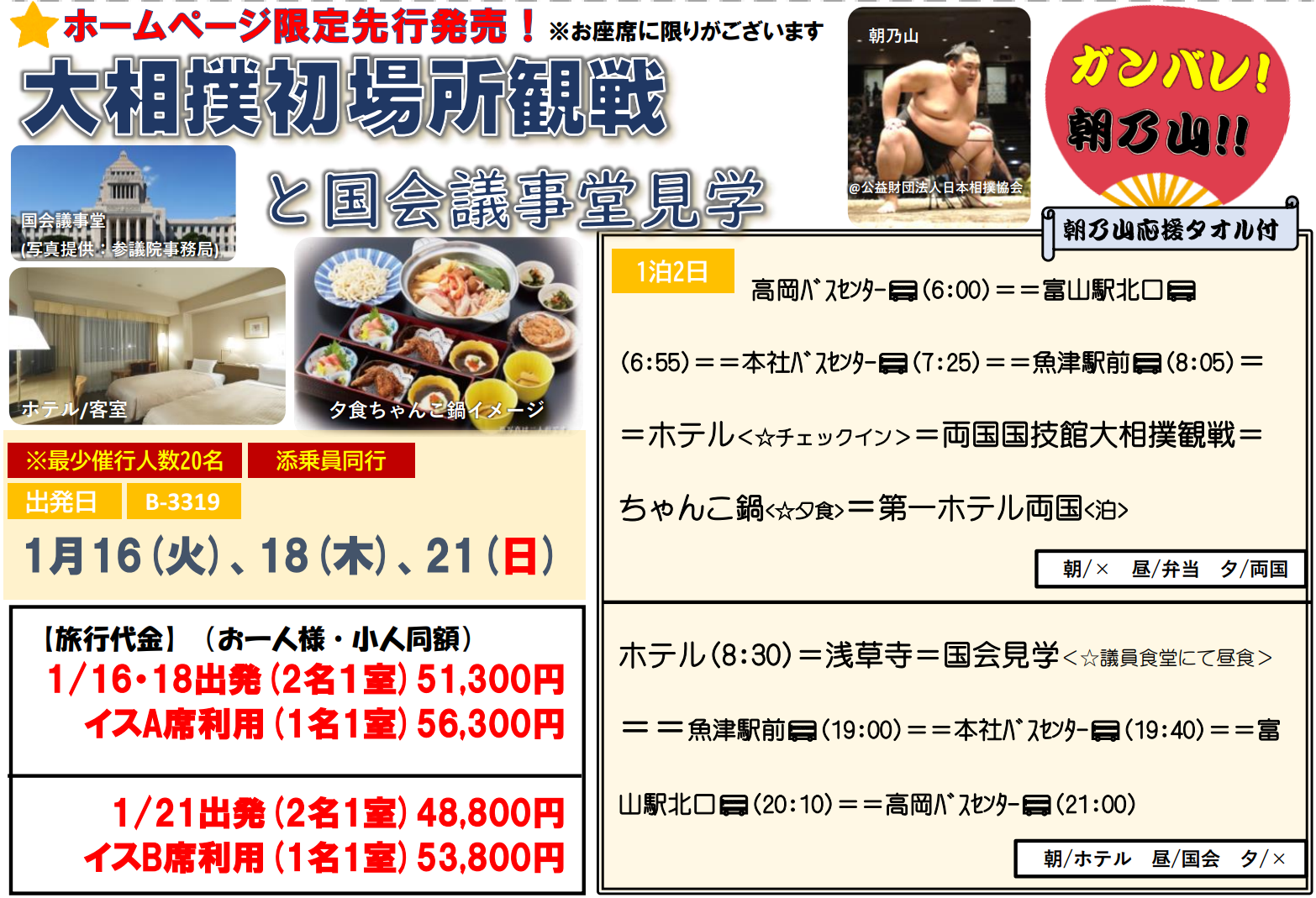 B3319【東京】大相撲一月場所観戦1泊2日