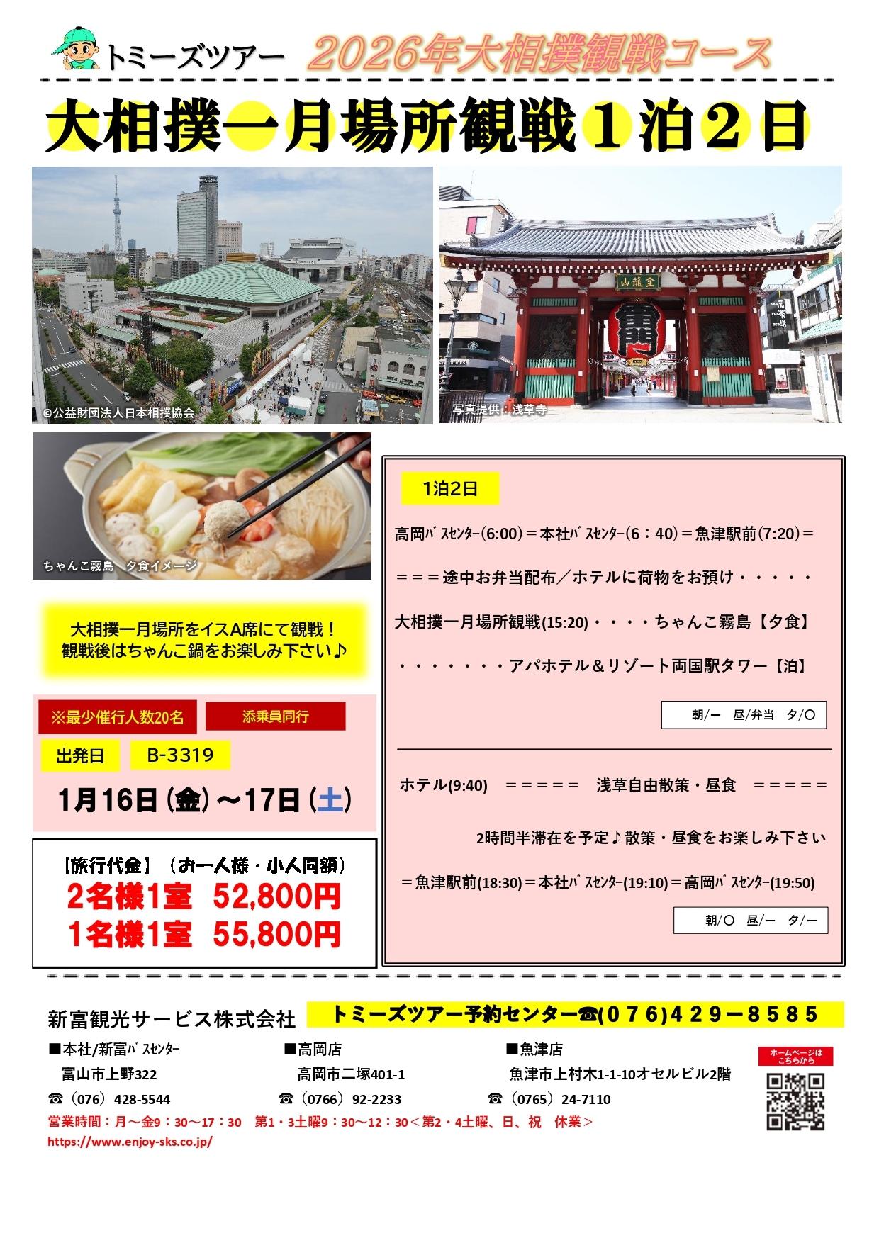 ✅「大相撲一月場所観戦1泊2日」11/20(木)発売にさきがけて一部座席数を先行発売いたします!