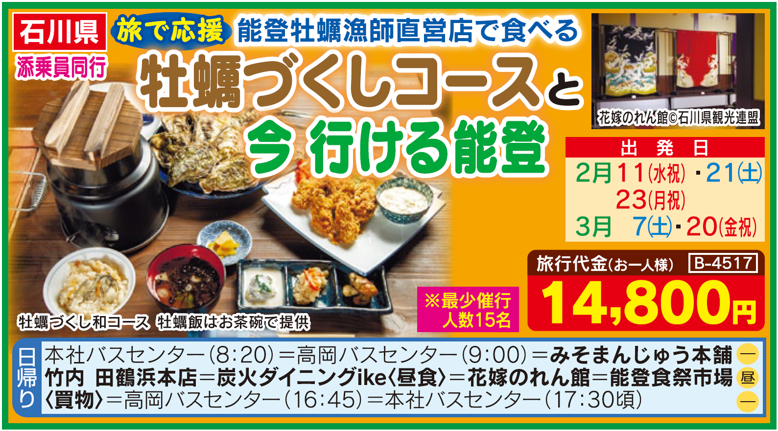 B4517【石川】「旅で応援」昨年も大好評! 能登牡蠣漁師直営店で食べる能登牡蠣づくしコースと今行ける能登
