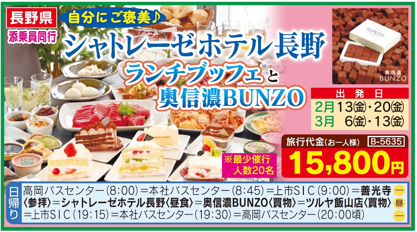 B5635【長野】自分にご褒美♪シャトレーゼホテル長野ランチブッフェと奥信濃BUNZO