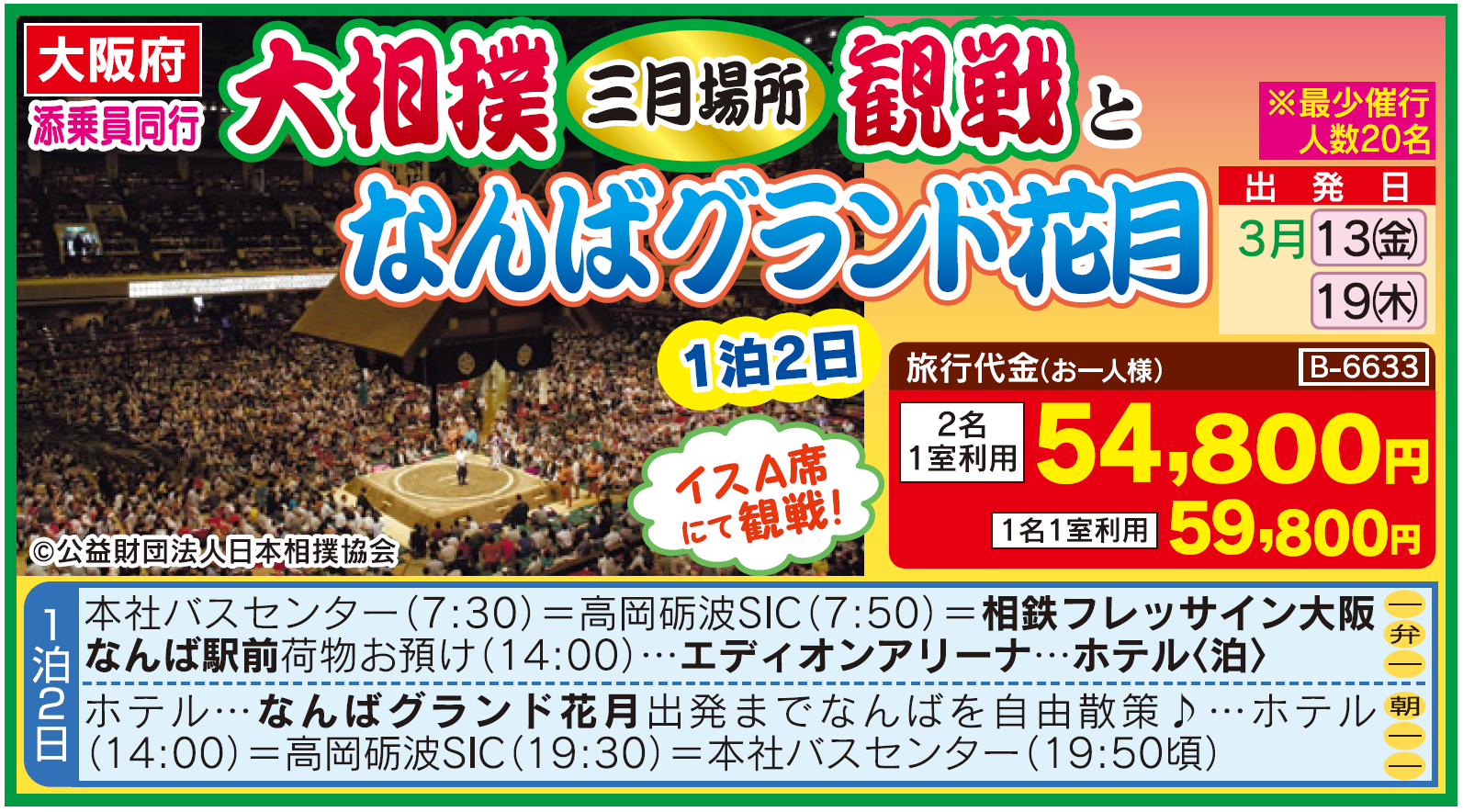 B6633【大阪】大相撲三月場所観戦となんばグランド花月1泊2日